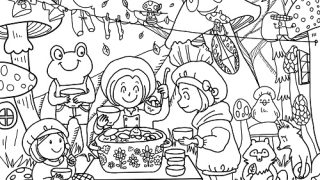 塗り絵 きのこの晩餐-mushroom supper このたび「きのこの晩餐」をお楽しみいただける塗り絵として公開する運びとなりました。この作品は、森の中のきのこたちが開く不思議で楽しい晩餐会をイメージしています。色を塗りながら、自由な発想で物語を紡ぎ出していただけたら幸いです。あなたの色彩で、新しい晩餐の世界を描いてください! 2025.01.04 塗り絵